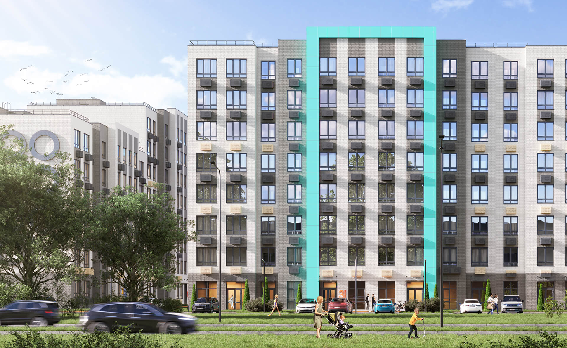 Лобби спроектированы так, чтобы обеспечивать максимальный комфорт для жителей и гостей комплекса. Здесь предусмотрены зоны отдыха с удобной мебелью, стойка консьержа, системы видеонаблюдения и просторные колясочные. Интерьеры общих зон, включая коридоры и лестничные пролеты, выполнены с использованием качественных износостойких материалов, обеспечивающих долговечность и эстетическую привлекательность.