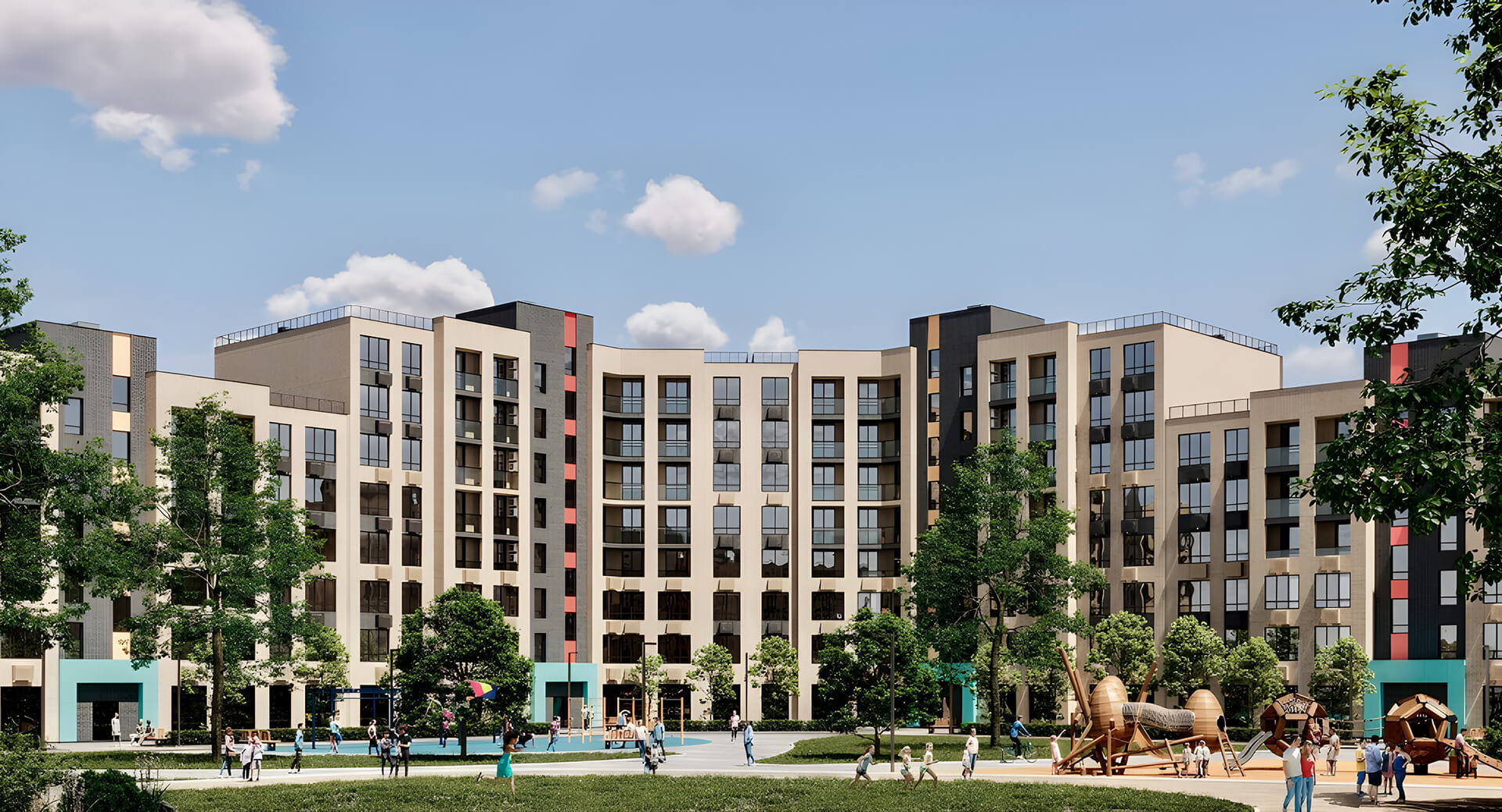 Территория «Просторов Крыма» спроектирована с особым вниманием к комфорту и экологии. Озелененные дворы, прогулочные аллеи и обширные парковые зоны создают ощущение гармонии с природой. Архитекторы и ландшафтные дизайнеры комплекса предусмотрели уютные скверы, места для семейного отдыха, детские игровые и спортивные площадки.